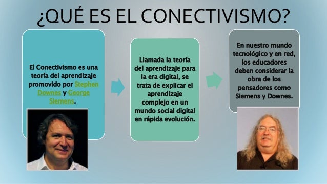 Según Siemens, el aprendizaje ya no es una actividad individualista. El conocimiento se distribuye a través de las redes. En nuestra sociedad digital, las conexiones y las conectividades dentro de las redes conducen al aprendizaje. Siemens y Downes han experimentado con cursos abiertos y han hecho hincapié en la importancia de la educación más abierta.